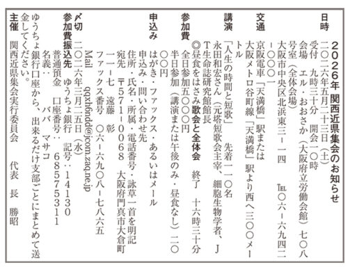 新日本歌人 > お知らせ > 2026年 関西近県集会のお知らせ > 111_SK260208_読者歌壇